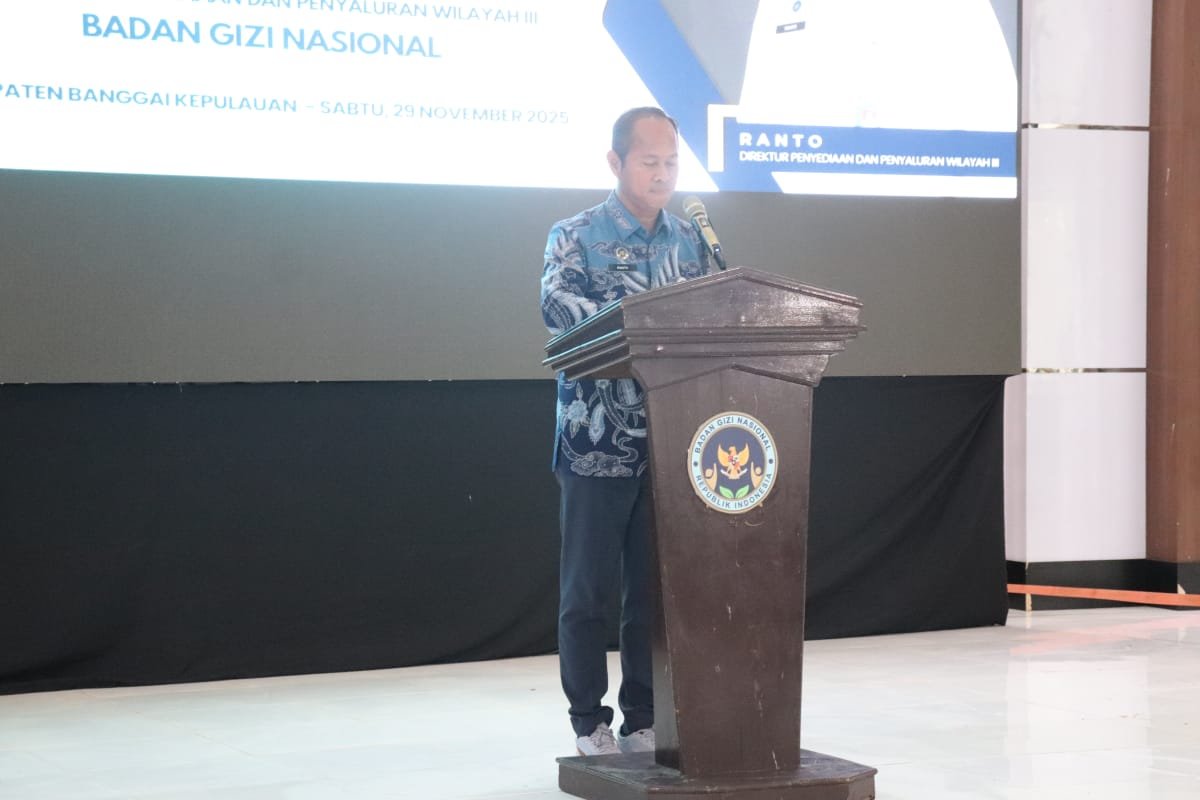 Direktur Penyediaan dan Penyaluran Wilayah III Badan Gizi Nasional, Ranto, S.P., M.A.P., dalam sambutannya ketika membuka acara Pelatihan Penjamah Makanan di Aula Bapeda Kabupaten Banggai Kepulauan, menyampaiakan keberhasilan program berskala besar dan masif ini sangat bergantung pada eksekusi di lapangan yang presisi, terstandar, dan dapat dipertanggungjawabkan.